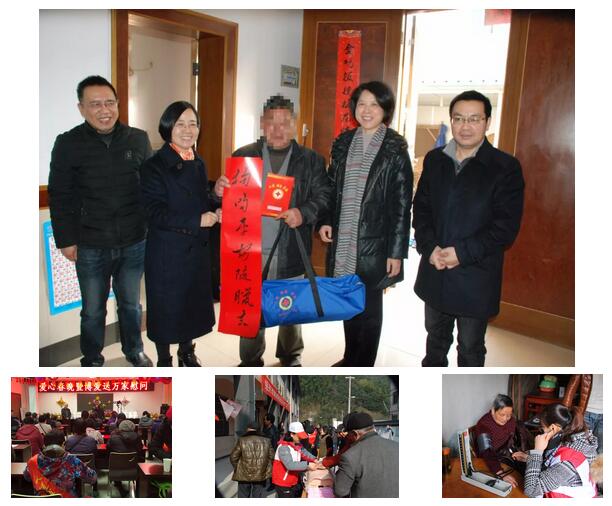 多年来,“红十字博爱送万家”活动不仅送去物质帮扶,还送上精神慰藉。活动中,红十字志愿服务者自发随带亲手书写的春联,与困境家庭人员热情交谈,认真倾听他们的心声,了解生活情况,给予他们精神上的安慰和疏导。绍兴市老干部红十字志愿服务队带着慰问金和京剧、越剧、歌舞等节目,为夕阳红康乐院、斗门镇敬老院、灵芝镇敬老院提前送上接地气的“春节联欢晚会”,精彩的节目不但赢得了老人的喝彩,也吸引了周边的群众驻足观看,在温暖老人的同时,也传递了社会正能量,倡导了尊老爱老的社会新风尚。“你们下次一定要再来啊!”表演结束后,志愿者们与老人们一一惜别。在富盛镇董溪村,红十字救护培训师给当地群众送去了600份应急救护手册,150个急救包,并在现场手把手指导村民学习心肺复苏和AED操作方法,医疗红十字志愿服务队在走访慰问中还为困境家庭开展义诊咨询服务。