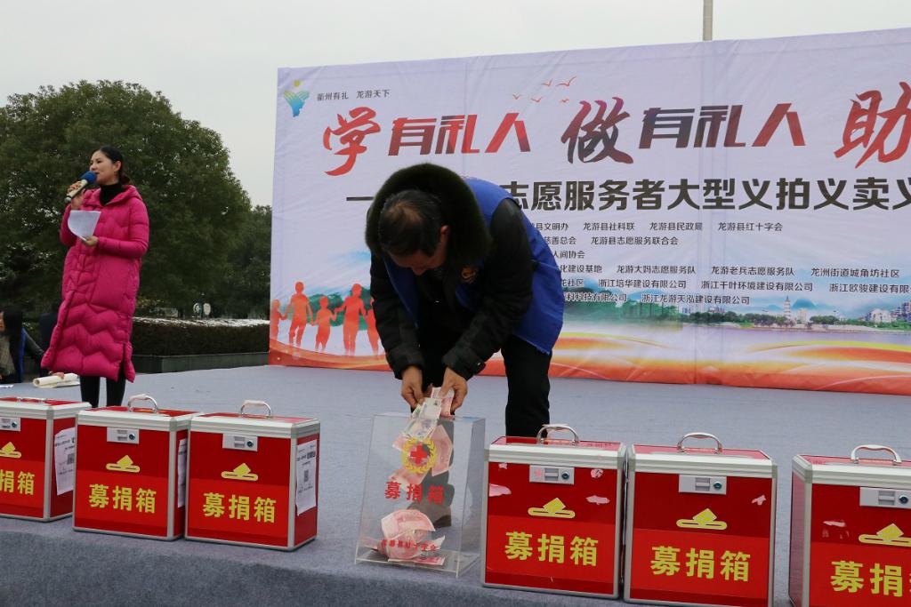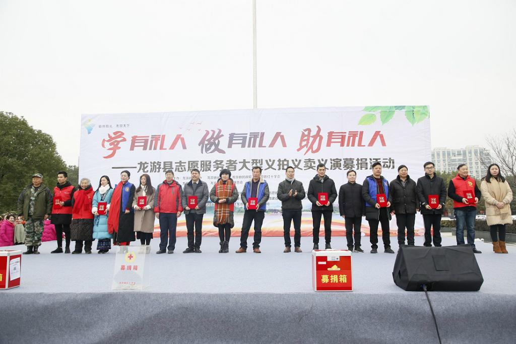 2018年12月31日,白雪和龙游2018年的最后一天约会。在荣昌广场,一场“学有礼人、做有礼人、助有礼人”——龙游县志愿服务大型义演、义卖、义拍募捐活动,为这一天增添了许多温暖的场景。该活动由龙游县文明办、县红十字会、县社科联、县民政局、县慈善总会、县志愿服务联合会主办,龙游爱在人间协会协办。共有28家爱心企业参加义卖、义拍募捐,200多名爱心人士参加义演。现场进行6轮爱心拍卖,竞拍物品有爱心书画家捐赠的书画、爱心个体户或企业捐赠的商品。活动现场,每一笔成交,都会赢得所有观众的掌声,因为每一笔善款,都凝聚着爱心人士的无私奉献,让这个冬天不再寒冷,让龙游处处充满温情。