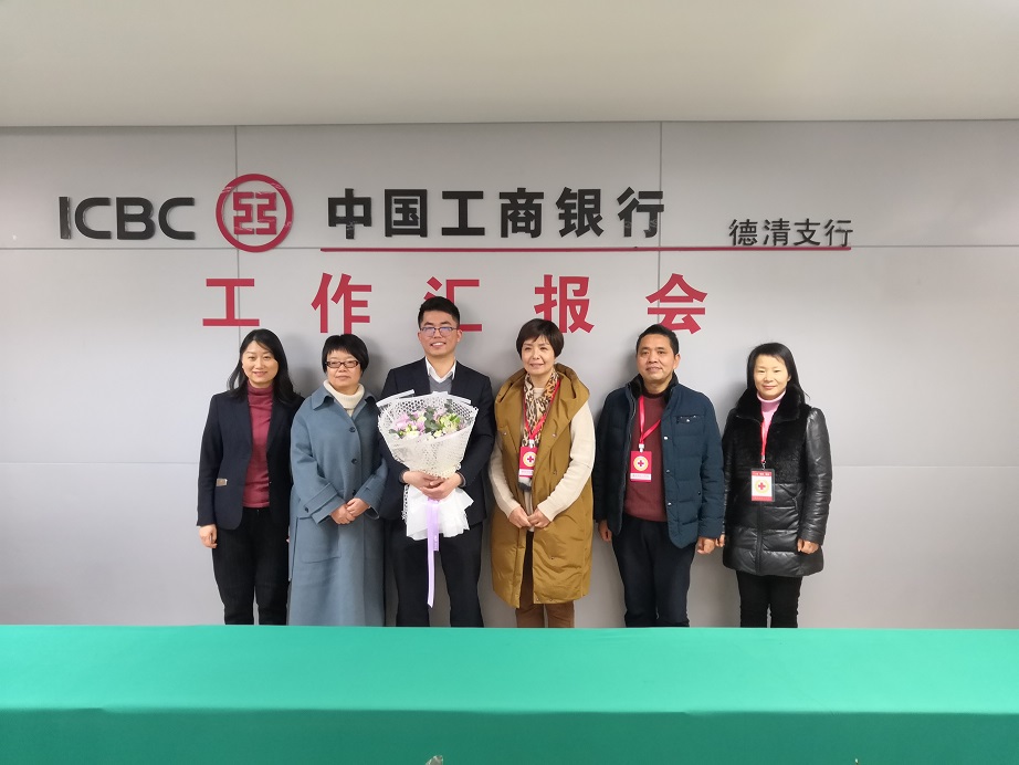 2019年1月2日,湖州市红十字会党组书记、常务副会长徐旭萍,党组成员、副会长朱治方,业务处处长吴飞娜等一行专程来到德清,上门慰问了近日完成捐献的我县第4例造血干细胞捐献者叶盛。