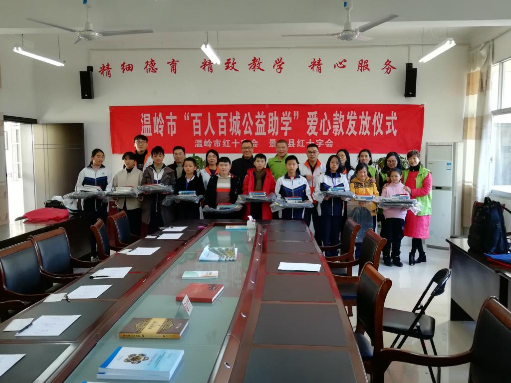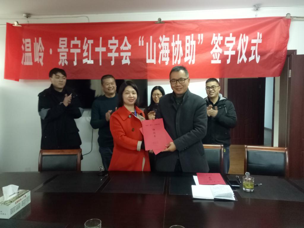 为积极响应省委、省政府关于开展“山海协助”活动号召。为推动欠发达地区加快发展。经过前期的对接和联系。12月17日,温岭市红十字会和景宁县红十字会在景宁签署了“山海协助”结对帮扶协议。根据协议要求。今后三年,温岭市红十字会将通过景宁县红十字会对景宁县各类困难群体开展力所能及的支持和帮助。协议签订当天,温岭市红十字会随即走访慰问了景宁县城北中学和沙湾中学30名初一困难学生,并给每人送去了1000元的助学金和学习用品。同时还带去了价值20余万元的捐赠药品。
