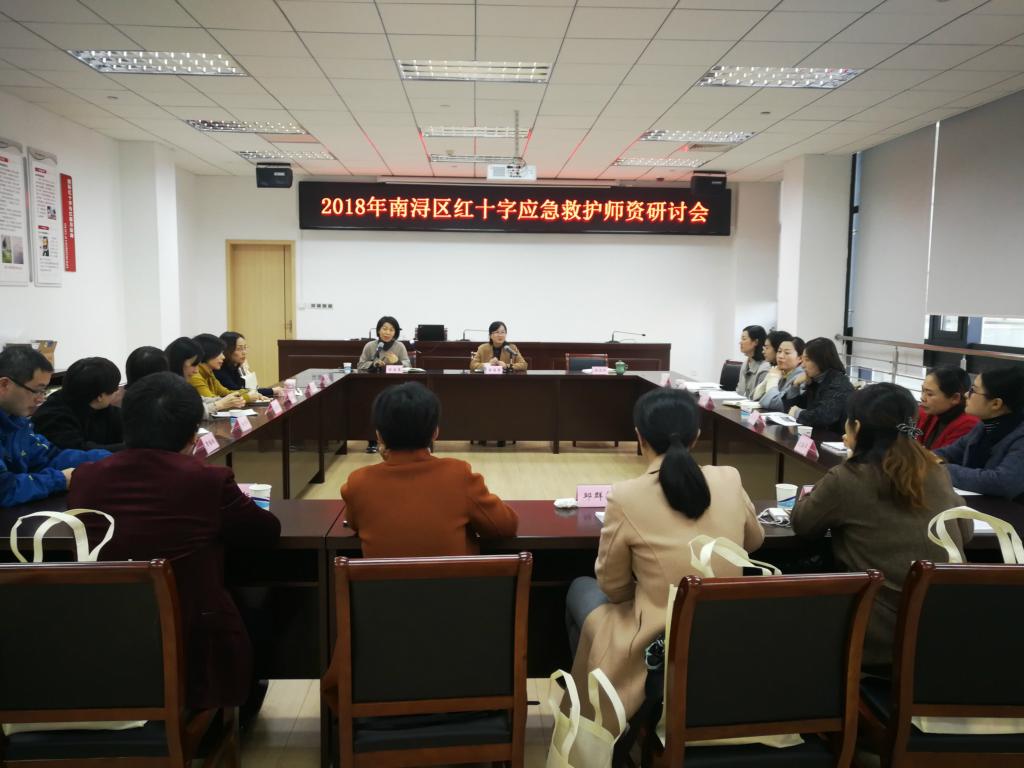 11月26日,南浔区首次红十字应急救护师资研讨会在区红十字会宣教室召开,来自全区各医院红十字会的 19名骨干师资参加此次会议。
