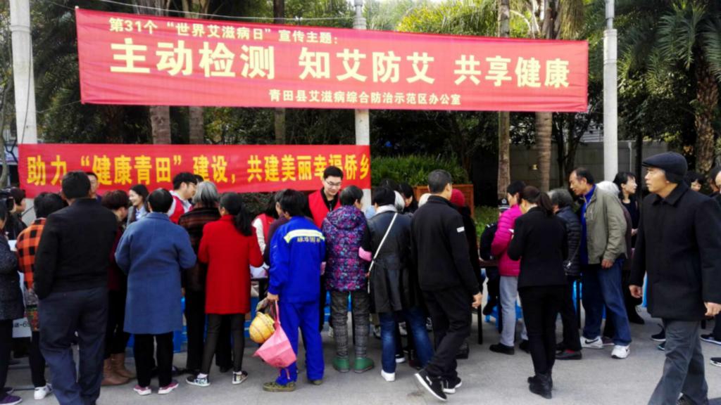 12月1日是第31个“世界艾滋病日”,今年的宣传活动主题是“主动检测、知艾防艾、共享健康”。为进一步普及艾滋病防治知识,11月30日上午,青田县红十字会参加了由县艾滋病防治办公室主办,县卫计局、公安局、教育局、妇联、团县委、人民医院等多部门联合的2018年世界艾滋病日广场宣传活动。