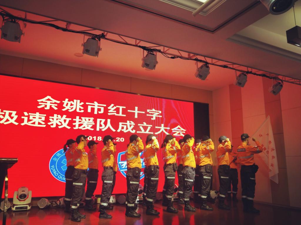 11月20日下午,余姚市红十字极速救援队成立仪式在新皇潮大酒店举行。至此,余姚市红十字志愿服务总队下属专业化队伍达到14支。