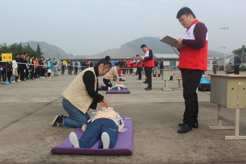 本次比赛分为急救知识竞赛、包扎救护、心肺复苏、紧急避险逃生等四大块内容。