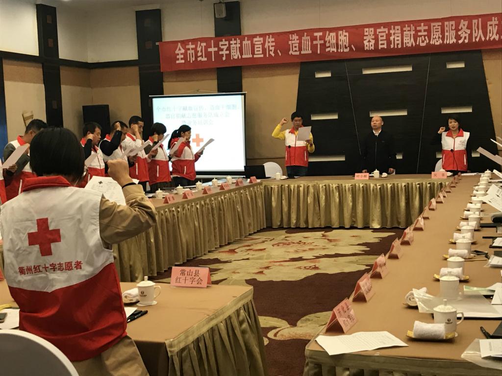 11月2日,衢州市红十字会整合现有资源,组建成立无偿献血、造血干细胞、器官捐献三支志愿服务队。