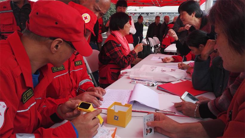 10月14日,由嵊州农商银行•红十字应急救援队和市中医院联合举办的“让爱在身边”九九重阳节关爱老人活动在文化广场举行。活动现场,嵊州市中医院医务人员对老年人进行义诊,嵊州农商银行•红十字应急救援队队员对已登记的60周岁以上的老人分发防走失黄手环和防衰老健指按摩器。 随后,志愿者们还来到阳光山庄开展了志愿活动。 活动当天,共计发放微信黄手环200多个,防走失定位贴70多份,定位黄手环82个。