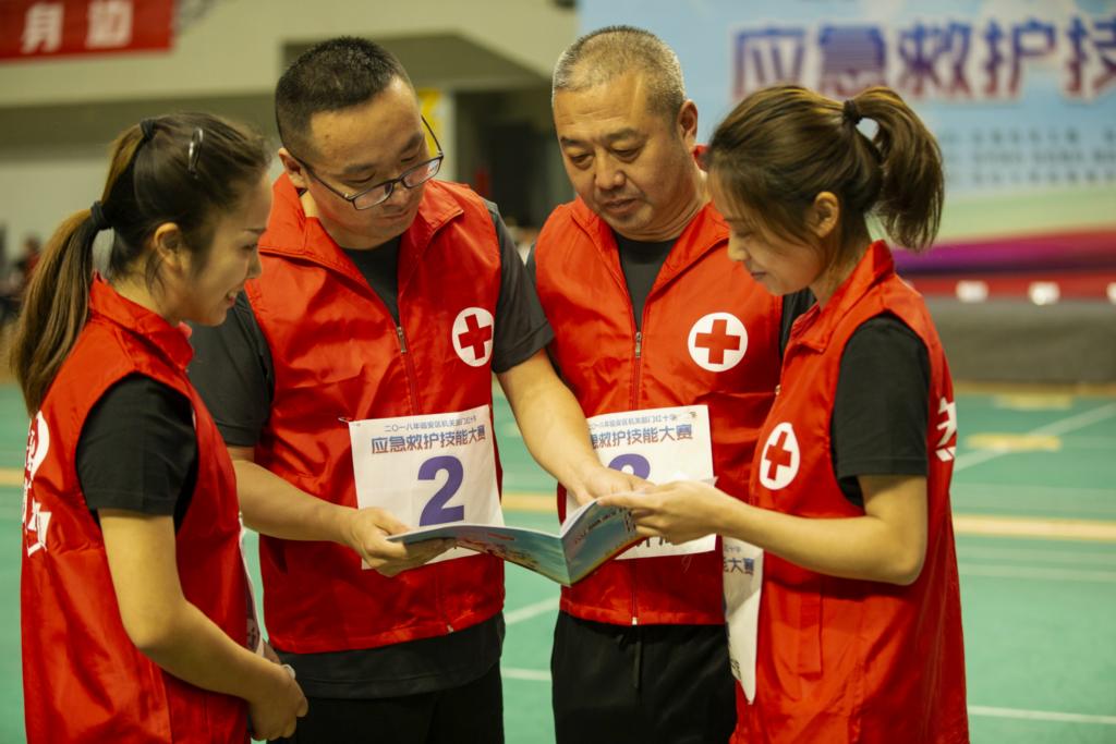 本次比赛的项目由心肺复苏和情景演练两个部分组成。心肺复苏:赛前随机抽签,由各代表队2名队员参赛,比赛时间3分钟,完成5个循环。情景演练:从竞技项目中抽取其中一个情景模拟题进行比赛,比赛时间8分钟。为了保证比赛的客观、公平、公正,比赛还专门邀请了杭州市红十字会的专业人员作为裁判。通过三个多小时的比赛,区卫计局代表队获得一等奖,区广播电视台、人力社保局、财政局代表队获得二等奖,另有6支队伍获得三等奖。
