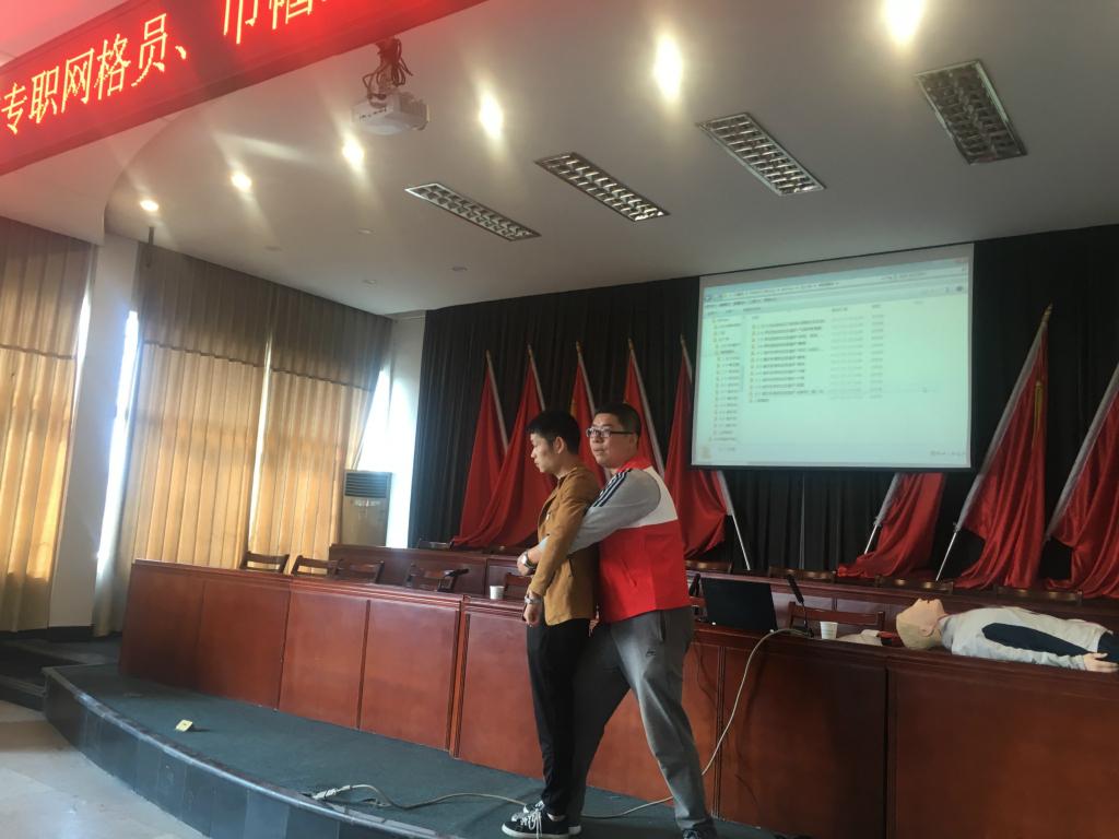 今年10月是杭州市设立的首个平安宣传月,全科网格员和巾帼志愿者在平安宣传和守护上发挥着积极的作用。10月13日上午,於潜镇红十字会在四楼会议室开展了网格员、巾帼志愿者应急救护培训,近200人参加培训。本次培训邀请於潜中学杨云老师授课,以村(社)内常见急症入手,深入浅出地对烫伤、骨折、异物梗阻等情况进行应急方法讲解,并重点对心肺复苏术(CPR)操作现场演示教学。