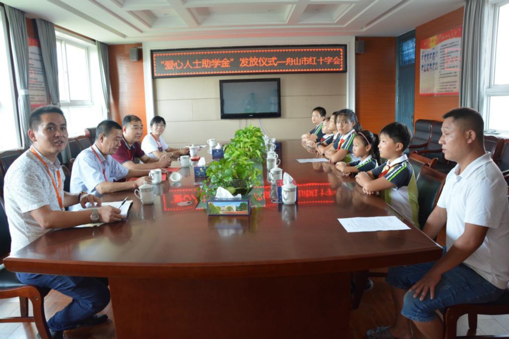 9月19日下午,带着爱心人士的嘱托,在副会长叶跃胜的带领下,舟山市红十字会工作人员来到定海区大丰中心小学,将首笔助学金送到7名贫困学子手上。