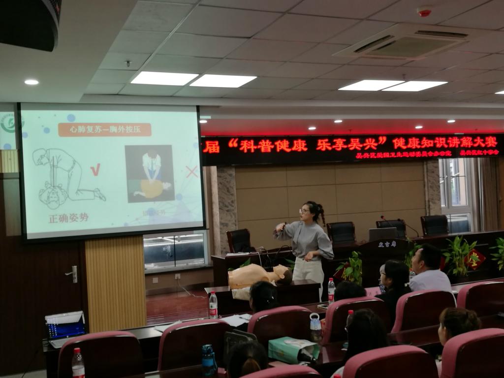 为贯彻落实《“健康吴兴2030”行动纲要》精神,进一步推进救护培训工作的实施,加强区红十字救护师资队伍建设,9月26日下午,吴兴区红十字会联合区爱卫办共同举行区首届“科普健康,乐享吴兴”健康知识讲解大赛,来自区医疗卫生单位所有成员参加此次比赛。市红十字会办公室主任朱培兰担任评委并对参赛队员的讲课进行点评,区红十字会应急救护师资费岚获得一等奖,费海华获得二等奖。