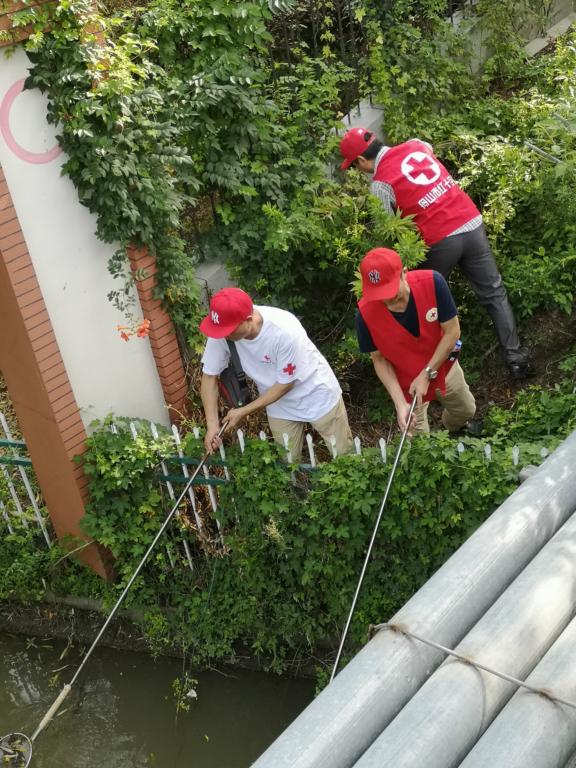 志愿者们来到博爱家园和养老试点社区,兵分三路,一路为社区居民开展健康咨询、应急救护技能宣教,提高居民的保健意识和应急处置能力;一路为居民提供理发、推拿及家电维修等便民服务,利用志愿者的技能和热心,为居民提供了实实在在的帮助,得到居民的连连夸赞;还有一路负责开展河道清理等五水共治集中活动。大家手拿各种工具,捡垃圾、捞河道,干得不亦乐乎,衣服湿透了也毫不在意。通过一上午的努力,即美化了环境,又通过自己的行动宣传,提高居民的环保意识。