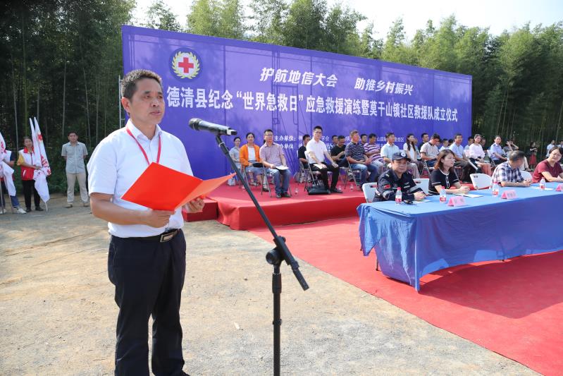 为了纪念“世界急救日”,更好地传播急救知识,更广泛地普及急救技能,全面检验基层红十字救援队伍训练成果,充分展现我县红十字人“护航地信大会,助推乡村振兴”高昂的精神状态,9月6日上午,德清县纪念“世界急救日”应急救援演练暨莫干山镇社区救援队成立仪式在莫干山久祺国际骑行营举办。本次活动由德清县红十字会、莫干山镇人民政府、莫干山国际旅游度假区联合主办,由德清县红十字山鹰救援队、浙江久祺自行车运动发展有限公司承办。