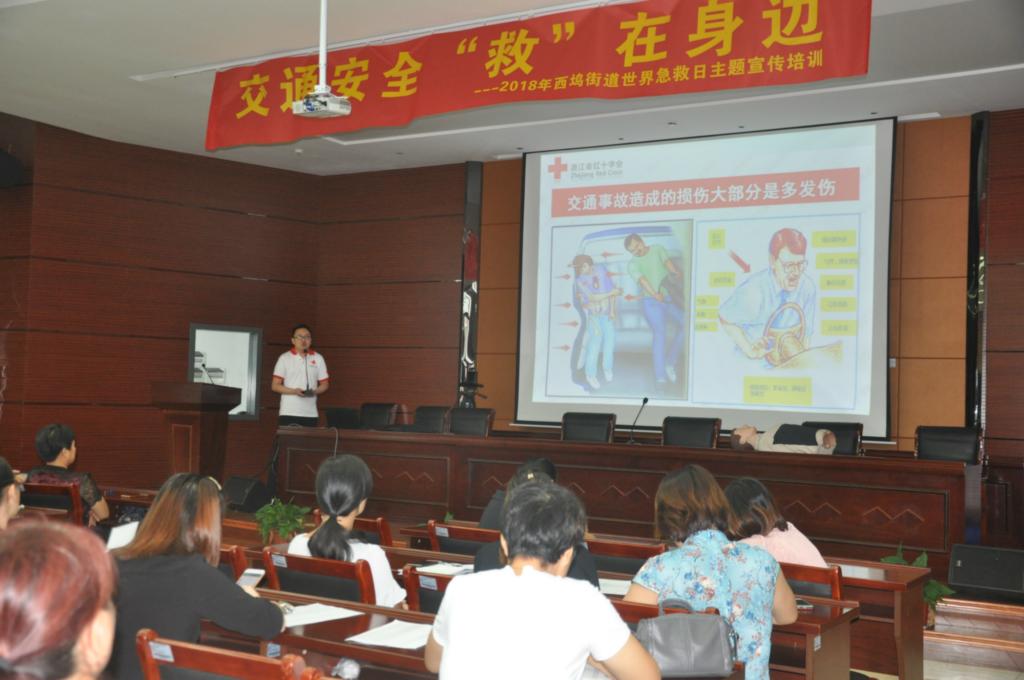 9月8日上午8点,区红十字会与西坞街道红十字会联合开展“交通安全‘救’在你身边”活动,邀请红十字救护师资队开展专题急救知识普及活动,同时宣讲了红十字运动基本知识和红十字精神。