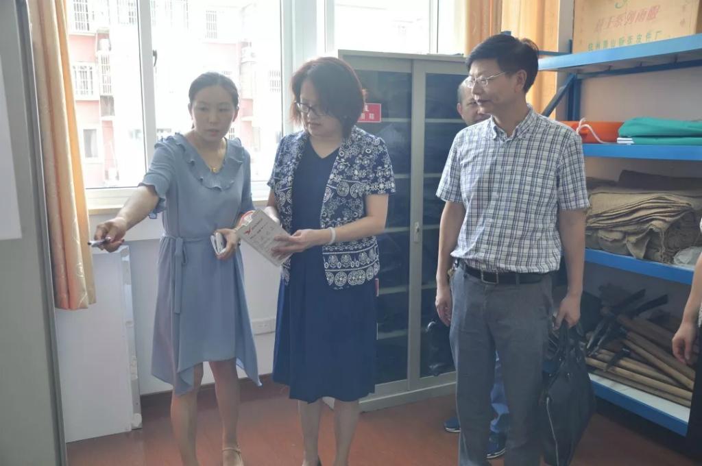 调研组一行先实地查看了宗汉街道桃园江社区红十字服务站、应急救护培训基地和慈溪市红十字备灾救灾仓库。