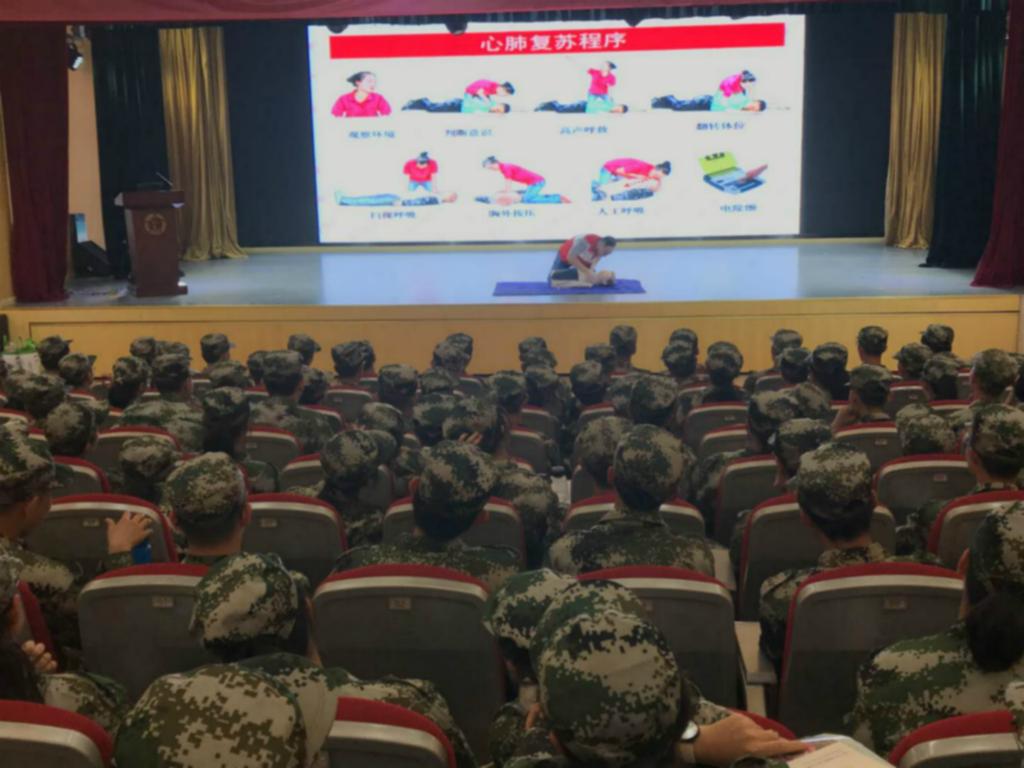 新生们在教官的带领下有序入场,尽管一天的军训又热又累,也掩盖不住他们对即将到来培训的跃跃欲试。心肺复苏、溺水现场急救...红十字救护师资用通俗易懂的语言,生动的案例,通过游戏模拟的方式向学生展示遇到突发意外时应如何观察环境、求救、实施救助、等待救援等一系列过程。