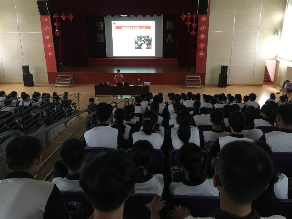 活动现场,红十字救护培训师首先通过真实的案例引出学习急救的重要性,让学子们有一个清晰的现场应急救护概念。然后通过讲解与操作相结合的教学方式,把中暑、溺水、晕厥、癫痫、鼻出血、烧烫伤、校内外踩踏与校园运动伤等常见急症和意外事件的现场救护知识技能进行了传授。并不时地请学生上来模拟溺水如何抛物给下水者、踩踏如何自救的方法,培训师精彩的讲解赢得了现场师生们的阵阵掌声。课后,学生与老师们直夸知识内容好,受益匪浅。