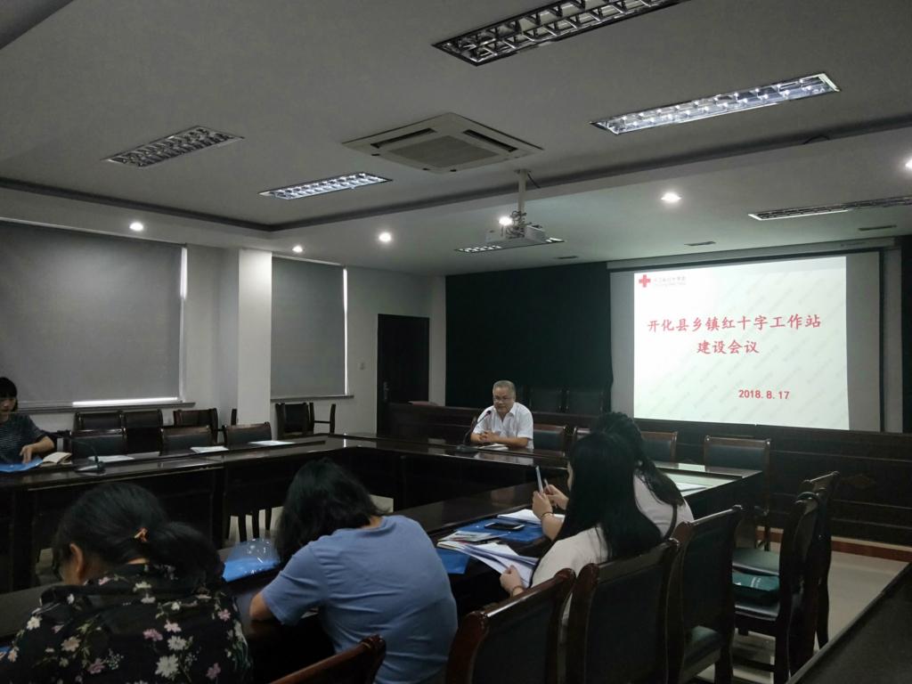 8月17日下午,开化县红十字会召开乡镇红十字工作站建设会议,各乡镇(芹阳办事处)红十字会秘书长、便民服务中心工作人员共30人参加会议。 会上,余志俊专职副会长强调了红十字工作站成立的重要性和必要性,并就下一步实施“红十字强基工程”工作进行了具体部署。 会中还专门介绍了红十字运动基本知识和开化县红十字会的基本工作,对小天使基金、天使阳光基金、康心基金等基金申请做了详细的介绍,让乡镇工作人员走进红十字,了解红十字。