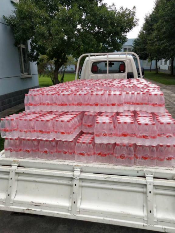 7月28日,在驻杭某部医院和家属区,由杭州市江干区红十字会联合爱心企业共同捐赠的自动体外除颤仪(AED)一体机、10台红十字公益水站和1万瓶矿泉水像时刻保卫者国家领土领空安全的空天卫士一样整齐的树立着,为铁血军营送去一份来自红十字会和社会爱心企业的关爱和清凉。