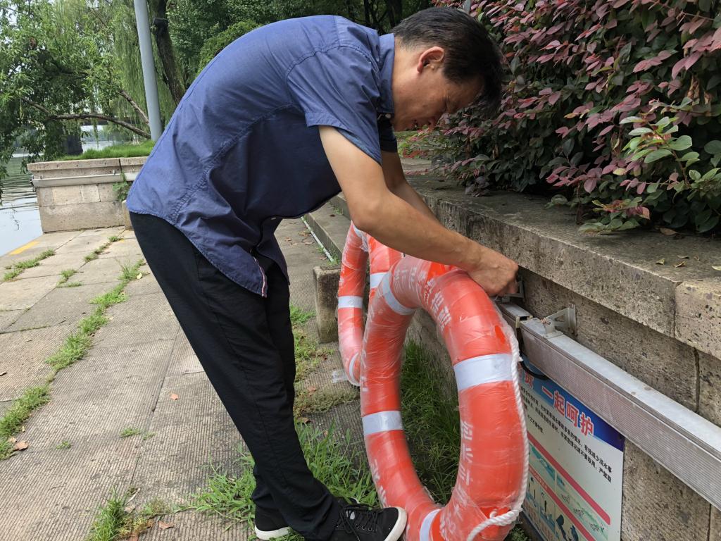 暑期到了,野外游泳的群众也多了起来,为避免身边溺水事故的发生,绍兴市红十字会工作人员又忙碌起来,逐个点检查环城河边的救生器材布置情况,并逐一更换和添加。
