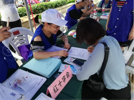 在活动现场,来自区红十字造血干细胞志愿服务队党员志愿者们,一边向前来咨询的市民发放有关造血干细胞宣传资料,一边向他们介绍捐献造血干细胞的意义和流程,通过自己捐献经历并解释捐献造血干细胞不会影响自身健康,以此打消市民群众的顾虑。对有意愿登记入库的市民指导他们填写表格,现场共有2位市民留取血样加入了中国造血干细胞捐献者资料库,20余位爱心市民表示将择机留样入库。