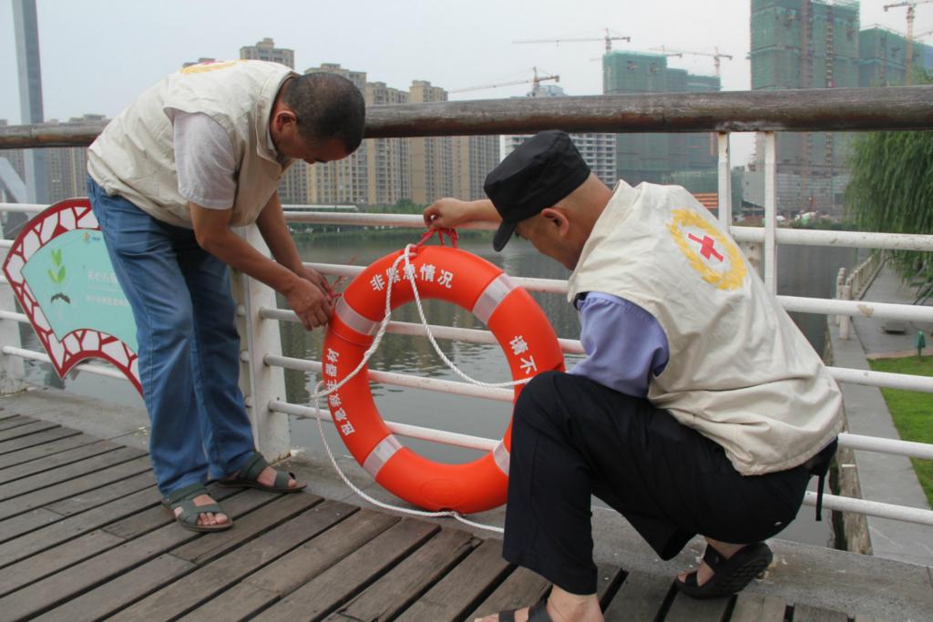 二是加大设施投入,编织防溺水网络。市红十字会要求各县(市、区)红十字会出台相关防溺水工作文件,发挥红十字会功能,积极落实防溺水工作。全市各级红十字会在潜在溺水事故点位设立警示牌,提醒市民水深危险,切勿下水;在人流较大的沿江、河边等地放置防溺水知识宣传栏,普及溺水急救知识;在易发生溺水事故地段投放救生设施。目前,以黄岩为试点,在易下水游泳或易落水的地段投放1-2个国际实心塑料救生圈和1条30米长的救生绳,已投放救生圈500个,救生绳250条。下一阶段,市红十字会将继续在全市范围内投放救生圈1000个,救生绳500条。