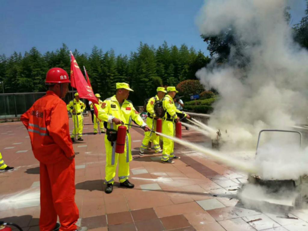 为确保安全生产月,安全生产百分百,6月15日,龙泉市政府应急办、市安监局、市消防大队、市交通运输局、市民防救援队、市红十字会应急救援队等单位联合组织安全生产月暨高层建筑消防演练。 演练科目包括消防器材操作示范、火灾现场人员疏散引导,受伤人员现场应急救护等。救援人员专业的技术指导,一丝不苟的工作作风,得到市领导的充分肯定。(李廖珍)