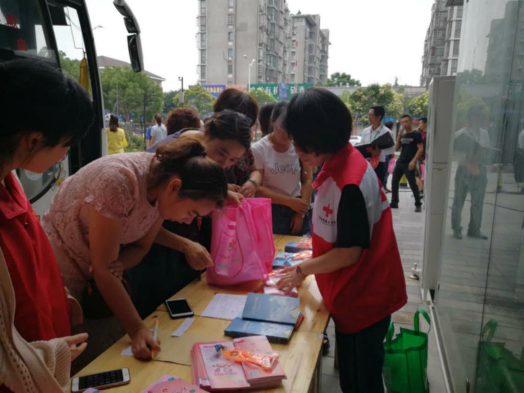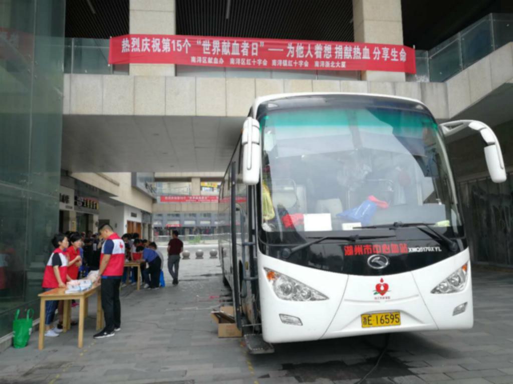6月5日,为纪念第15个世界献血者日,南浔区红十字会联合区献血办等单位以“为他人着想 捐献热血分享生命”为主题,在南浔浙北大厦广场举办无偿献血宣传动员活动。
