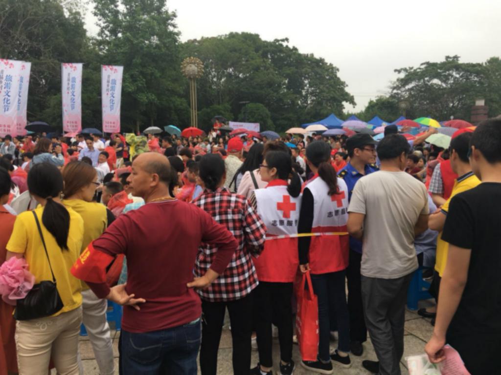做好秩序“劝导员”。开幕式现场,可谓是人声鼎沸,舞龙表演、旗袍秀、村书记代言、旅游线路发布等,活动内容精彩纷呈,因群众人数众多,经常会不自觉地超越了看台的界线,志愿者们总是不厌其烦地向群众解释并寻求他们的谅解,同时将人群队伍慢慢移回正确的看台位置,为现场营造了良好的秩序。