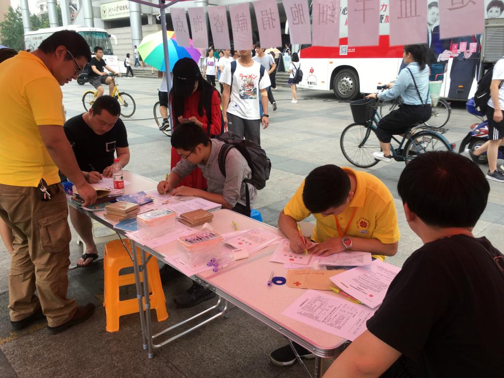 宣传展板一打开,就吸引了不少来往学生。“我要入库”,这是我们在现场听的最多的一句话。由于造血干细胞采集过程和捐献成分血相似,我们要求入库需要有一次以上的献血经历,好几个大一的女孩子立马走上献血车,填好献血的表格过来,“那我献200ml,一起做造干入库”。一天下来,共有33名学生加入中华骨髓库。