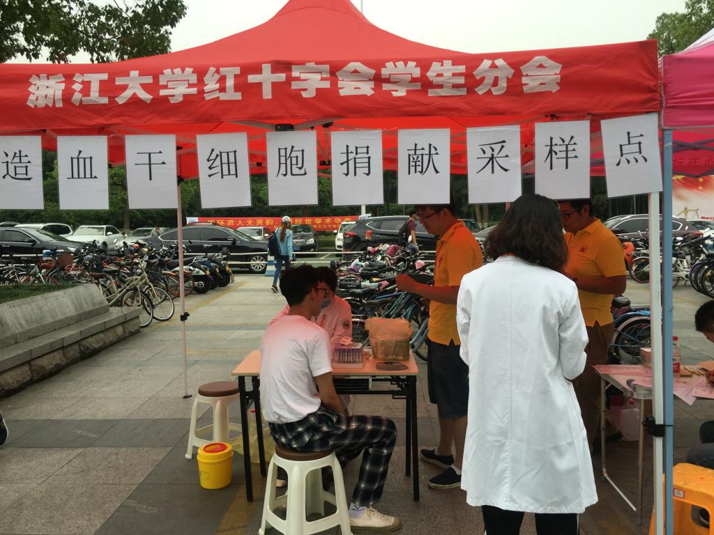 5月29日中午十点,两辆献血车缓缓开进浙江大学紫荆港校区,浙江省红十字会和西湖区红十字会联合开展浙大献血暨造血干细胞入库专场活动。除了红会工作人员外,两名造血干细胞成功捐献者陆雪贤和黄钢锋特意赶到现场,讲述自己捐献造干挽救白血病患者的经历。