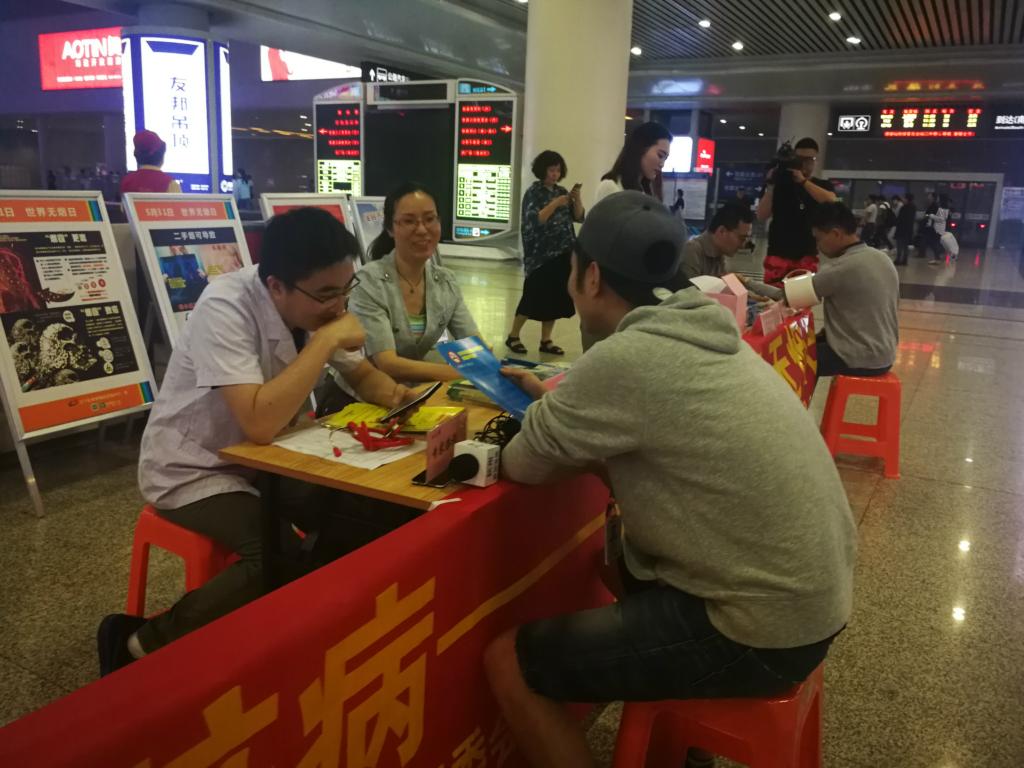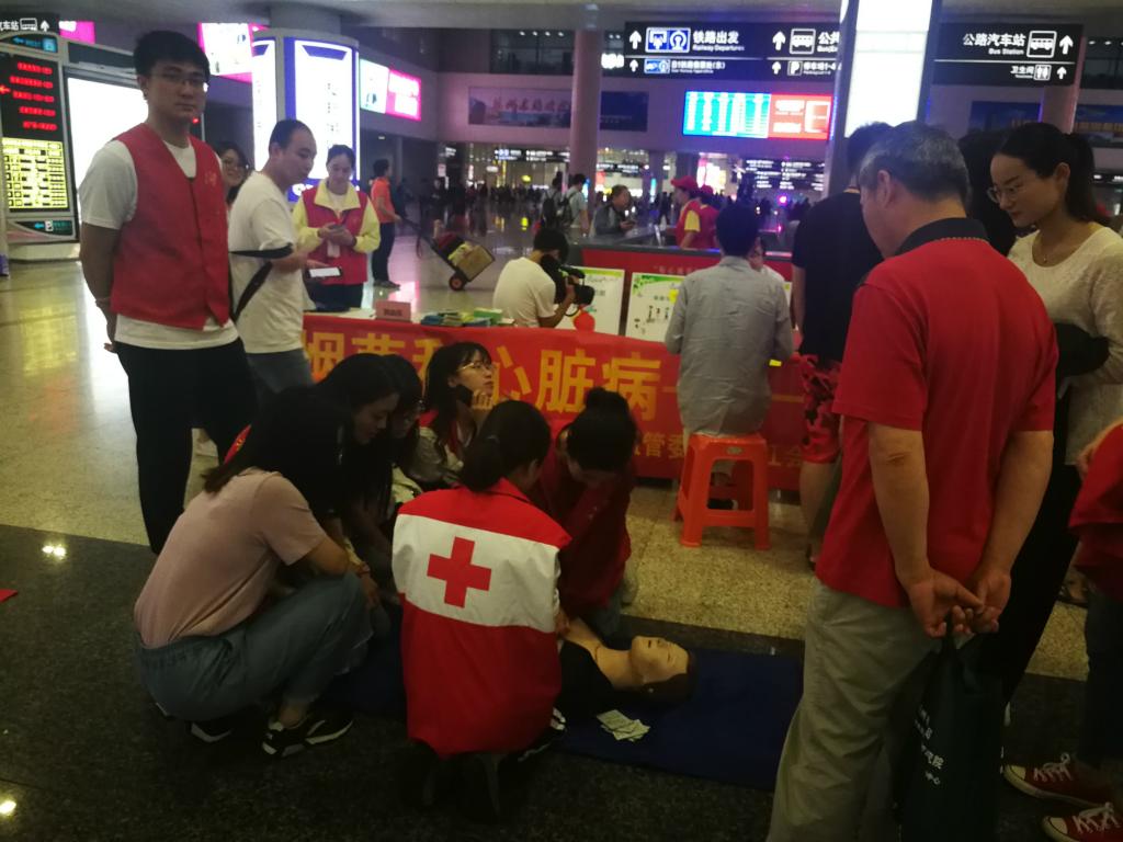 5月31日是第31个世界无烟日,为进一步提高公众对吸烟和二手烟暴露对心血管危害的认识,积极倡导公众营造健康无烟的环境,5月31日上午,杭州市江干区红十字会与杭州市红十字会医院、江干区疾控中心、彭埠社区卫生服务中心、浙师大附属杭州笕桥实验中学的50名志愿者来到亚洲最大的火车客运枢纽——杭州火车东站,开展“禁烟护心”万人签名公益活动,并向旅客普及健康知识和红十字应急救护培训技能,以实际行动营造健康、清洁、无烟的公共环境。