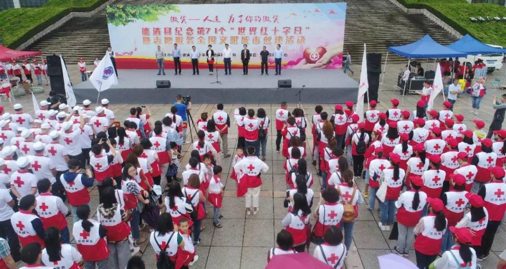 为纪念第71个“世界红十字日”和打赢创建全国文明城市攻坚战,凝聚更广泛的社会力量参与、支持红十字事业和我县文明城市创建,在世界红十字日来临之际,5月6日上午,德清县红十字会联合县卫计局、县新闻中心在武康千秋广场举办了纪念第71个“世界红十字日”暨志愿服务全国文明城市创建活动,今年的主题是“微笑——人道,为了你的微笑”。市红十字会党组书记、常务副会长徐旭萍,市红十字会党组成员、秘书长郭建根,县领导敖煜新、宋文金、洪延艳、方杰等出席活动。
