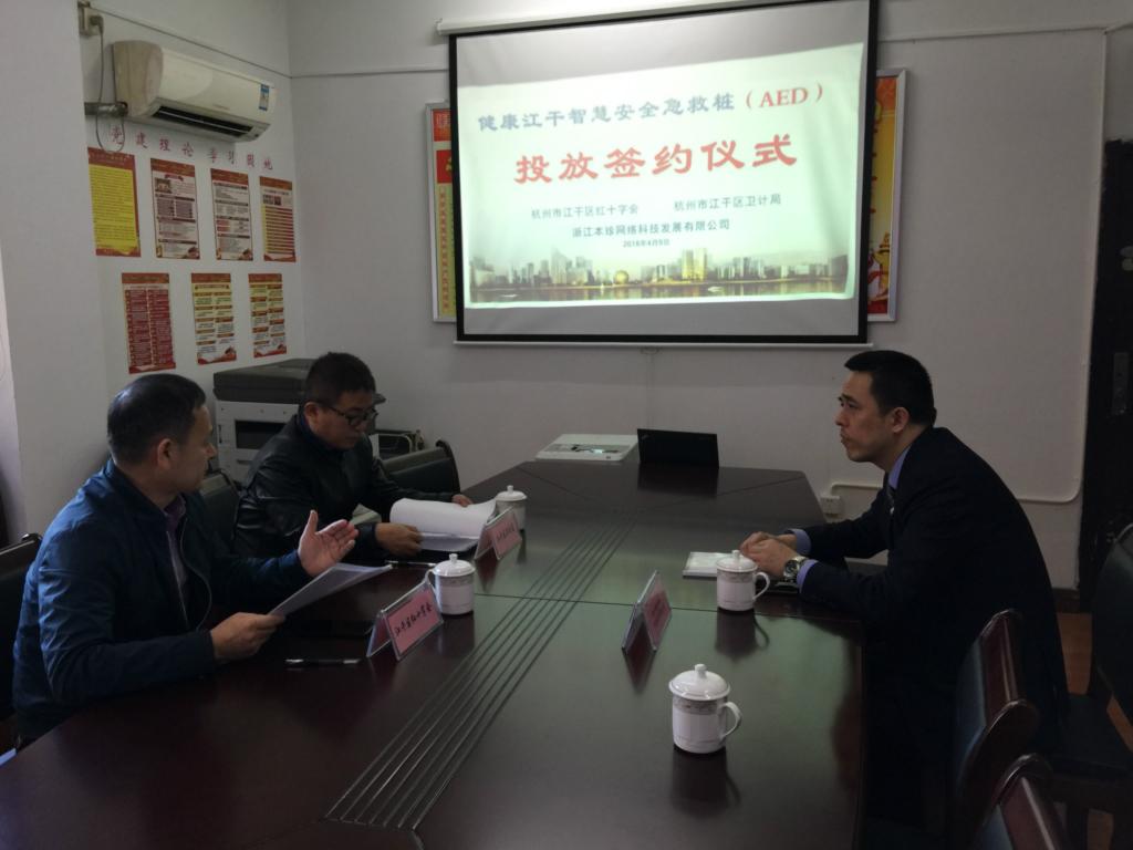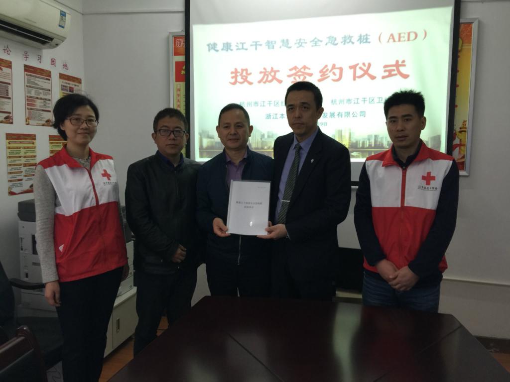 4月9日上午9时30分,在江干区红十字会会议室(庆春东路1号、区政府综合楼北楼213室),一场爱心签约仪式如期举办,来自江干区红十字会、江干区卫计局和负责人三方签订协议,自此、江干区属医疗结构(区级人民医院、街道社区卫生服务中心)将统一配备救命神器——自动体外除颤仪(AED)12台。