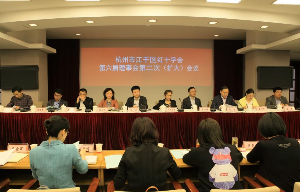 4月25日,杭州市江干区红十字会召开第六届理事会第二次(扩大)会议,深入学习贯彻习近平新时代中国特色社会主义思想和党的十九大精神,传达省红十字会七届二次理事会议和市红十字会十届六次理事会议精神,部署2018年全区红十字会工作。副区长、区红十字会会长朱君出席会议并讲话,副区长阿斯古丽,第六届理事会理事、区纪委第三纪检监察组吴庆峰组长、区红十字会监事会王文彪监事长、区属医疗机构分管负责人、省市红十字示范学校分管负责人、各街道红十字会秘书长、优秀红十字志愿者等80余人参加会议。
