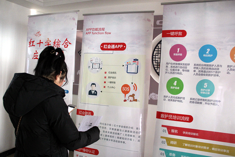 1月12日至13日,红十字综合应用APP--“红会通”首次上线试用。在横街镇举办的红十字救护员培训班上,参加培训的30余位幼儿教师和企业员工,都扫码下载了“红会通”APP,进行注册培训。
