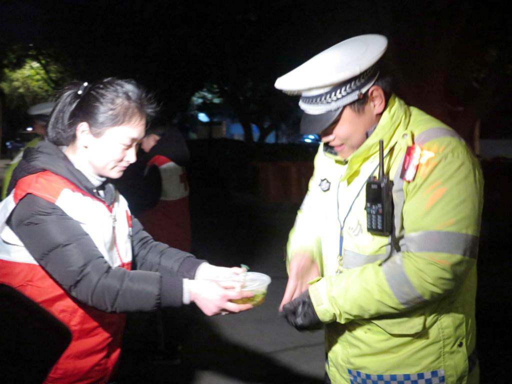 15日下午,30多名红十字志愿者早早就来到指定地点,开始热火朝天地做准备工作——清洗食材、制作肉馅、包饺子,经过3个多小时的精心制作,2000多只热腾腾的饺子新鲜出炉,被志愿者们仔细分装后,放入保温箱内等待派送。到了晚上,当别人都在围着电视吃团圆饭时,志愿者们背着热腾腾的饺子出发,根据安排前往大碶派出所、交警大队(大碶迎恩寺)、巡特警(大碶迎恩寺)、公交大碶站调度室、轨道交通大碶站和邬隘站,为还在值勤守夜的一线工作人员们送去爱心饺子,并对他们说一声“过年好,你们辛苦啦”。(李甬江,杨丽倩)