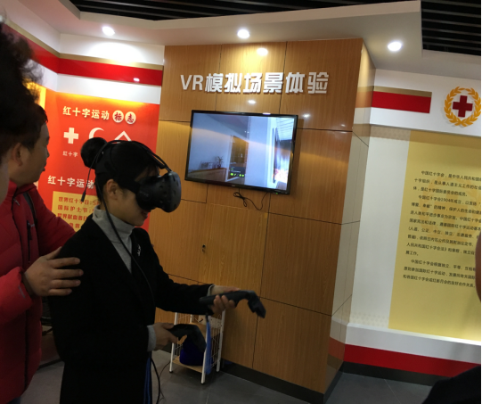 开馆仪式结束后,方黎明副县长等体验了现场应急救护VR模拟场景。