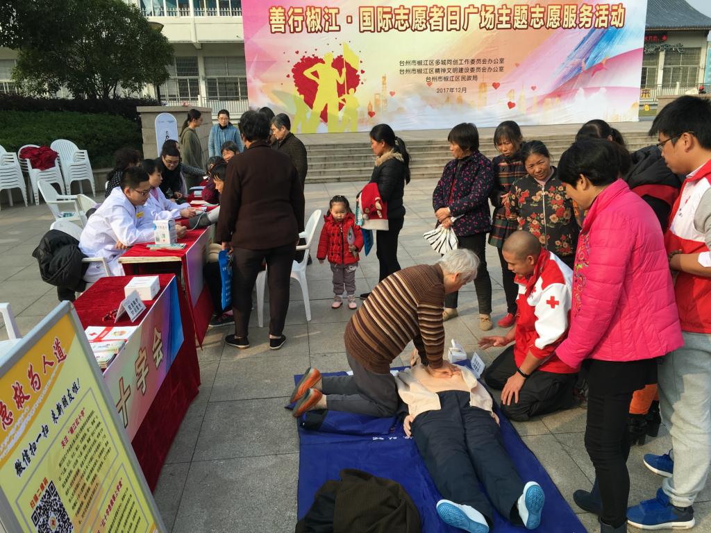 12月4日,第32个国际志愿者日到来之际,为弘扬志愿精神,营造全社会人人参与志愿服务、支持志愿服务的良好氛围,更好地传递社会正能量,由椒江区同创办、区文明办、区民政局主办的善行椒江•国际志愿者日广场主题志愿服务活动在青少年宫广场举行。区红十字会、区公安分局、区科协等10多家单位的志愿者们以实际行动践行志愿服务精神,联合为群众提供了应急救护教学、义务理发、家庭安全防盗等20多项服务。