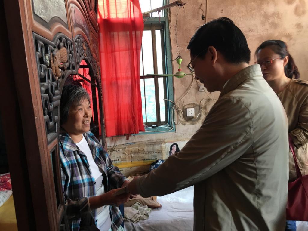 重阳节来临之际,鄞州区红十字会党组书记、常务副会长李鹏程,鄞州区卫计局党委委员、计生协会专职副会长白廷军在工作人员陪同下,来到云龙镇、咸祥镇实地走访慰问计生特殊家庭,向他们带去节日的问候,并送上“博爱暖心基金”和慰问品,为老人们送去党和政府的关怀和温暖。