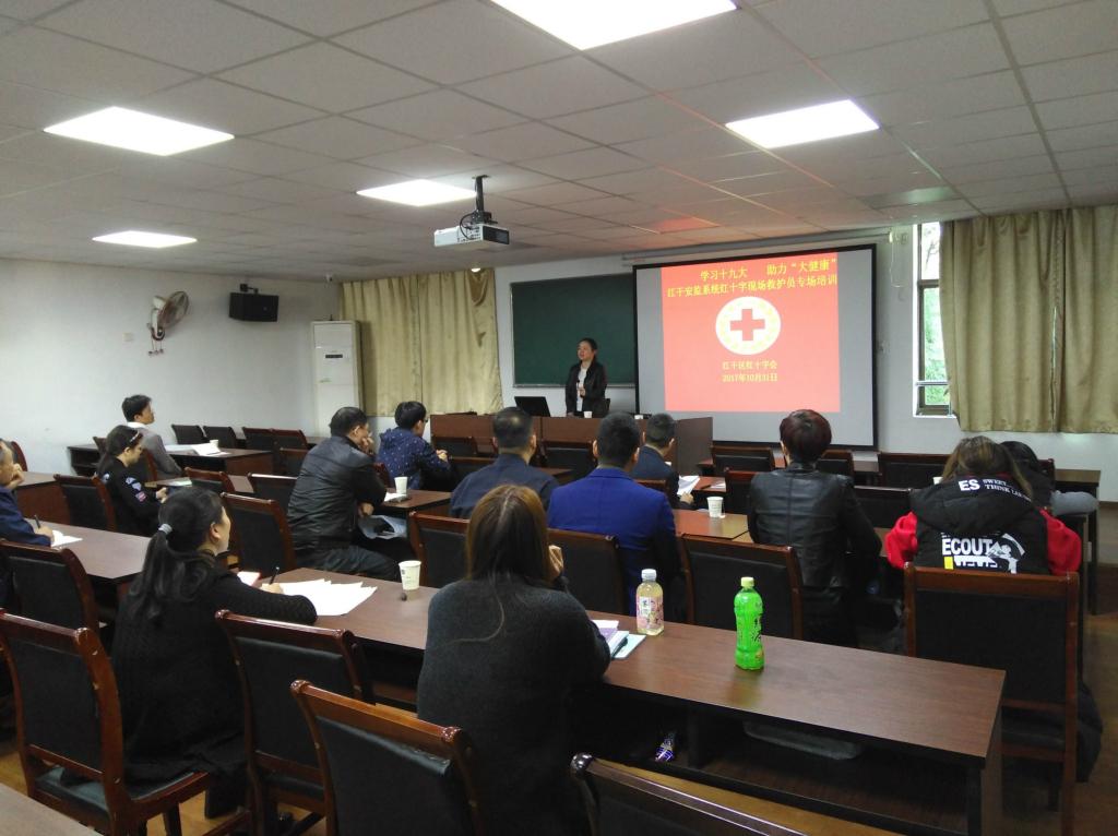 10月31日,杭州市江干区红十字应急救护培训讲师来到采荷街道常青苑社区和市安监干部培训基地,为112名社区工作者、物业、楼道长、安监人员和居民等重点人群送去红十字应急救护专场培训。