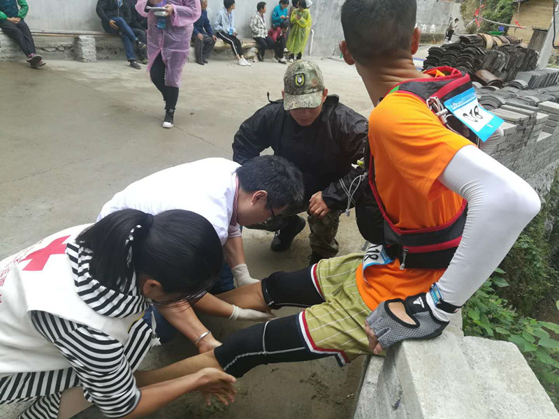 14日清晨7:00,30名红十字救护员志愿者在县红十字会常务副会长王芳的带领下,准时到岗就位,携带医药箱到统一地点集结。进入岗位后,志愿者根据自己的职责分工,开始布置站点,提前做好准备。他们全程参与现场医疗急救保障工作,充分展示了专业的急救技能和良好的精神风貌。在当天比赛中,9个救护站的红十字救护员志愿者共处理参赛选手大小伤情30余起。有的运动员出现小腿抽筋,则采取拉升肌肉,喷利多长因氯定喷剂,揉搓小腿放松其肌肉。个别运动员出现半月板损伤,采取用弹性绷带带8字包扎膝关节,保护他的膝关节。