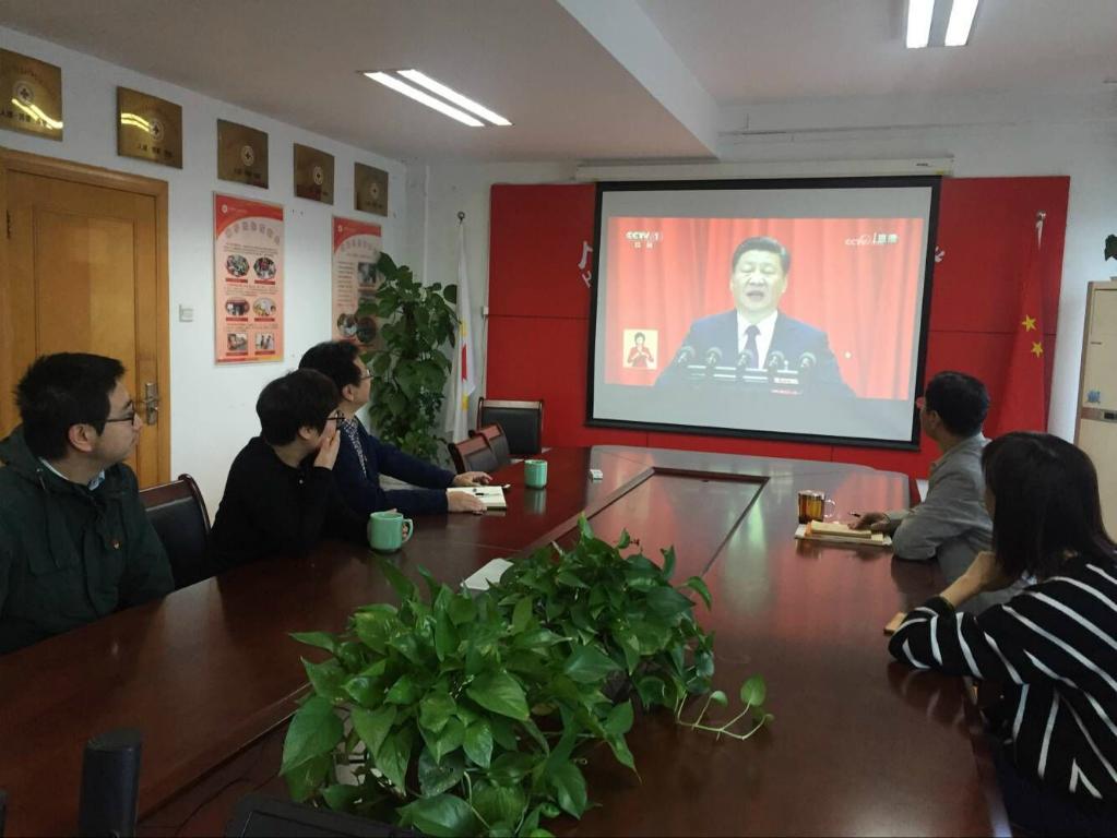 10月18日,江北区红十字会党支部五名党员胸前佩戴着党徽,齐聚在会议室,收看中国共产党第十九次全国代表大会开幕式直播。全体党员认真聆听习总书记作的十八届中央委员会的报告。5年来,以习近平同志为核心的党中央迎难而上、开拓进取、革故鼎新、励精图治,向党、向国家、向人民、向历史,交出了一份令人振奋的答卷。支部党员们不仅认真记录报告内容,并在开幕式结束后对大会的召开展开了热烈讨论。