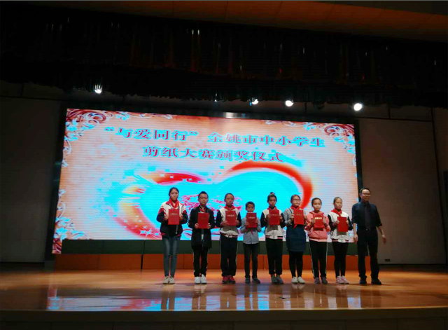 经专家组认真评选,市姚江小学杨余滔同学的《凝聚爱心》、市世南中学解雨昕同学的《红十字会》等9件作品获一等奖;市姚江小学龚亮同学的《别忘了有他们》等17件作品获二等奖;市姚北实验学校谭晶同学的《救援第一线》等33件作品获三等奖。施灵敏等9位指导老师获优秀指导奖;市世南中学、市姚江小学、马渚镇开元小学、市江南新城小学、阳明街道老方桥小学、丈亭镇三江小学获优秀组织奖。(吴晶晶)