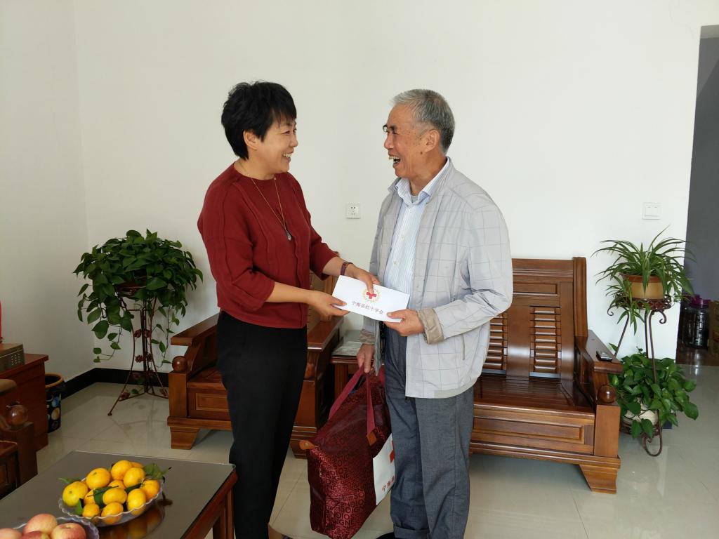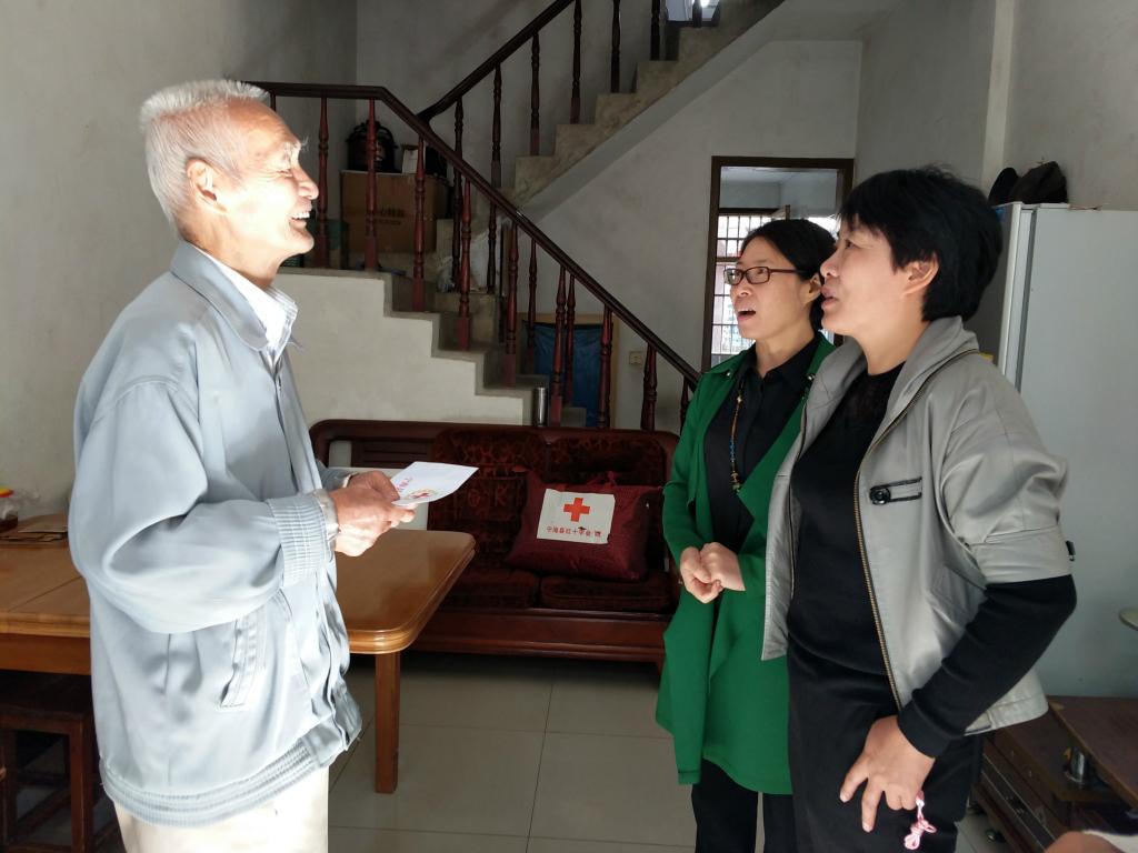 重阳节来临之际,宁海县红十字会走访慰问了15位遗体、角膜捐献登记的老年志愿者,为他们送上重阳节慰问品和节日的祝福,对他们的无私奉献表示感谢。这是宁海县红十字会自2015年以来的传统,体现了“人道、博爱、奉献”的红十字精神和关爱老年志愿者的美德。