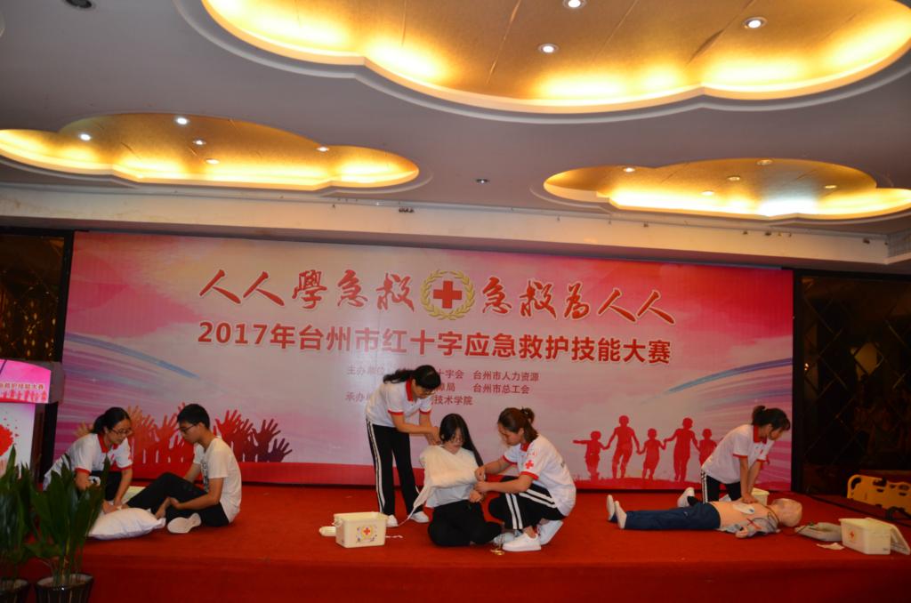 为进一步促进群众应急救护水平的提高,进一步提高群众的自救互救能力。由台州市红十字会、台州市人力资源和社会保障局以及台州市总工会联合主办,台州职业技术学院承办的2017年台州市“人人学急救,急救为人人”红十字应急救护技能大赛于9月26日至27日举行,来自全市各县市区的9支队伍,共36名选手参加比赛。 浙江省红十字应急救护培训中心主任王春香,台州市红十字会党组书记、常务副会长金先军,台州市人力资源和社会保障局副书记、副局长李正瑞,台州市总工会党组成员汪永忠,台州市红十字会党组成员、专职副会长李昌建,台州职业技术学院医学与制药工程学院院长悉立民等领导出席并观看比赛。 本次技能大赛内容包括救护演讲竞赛、理论知识竞赛、固定技能竞赛、心肺复苏和止血包扎技能竞赛,团体场景演练竞赛五个项目。本次比赛奖项设有团体奖项和个人奖项,经过两天的角逐,团体奖项的第一名由临海获得,个人奖项的第一名由临海的朱临萍获得,并由市总工会按照有关规定申报台州市五一劳动奖章,获得个人比赛的前四名参赛选手获得由市人力资源和社会保障局授予的“台州市技术能手”荣誉称号。第一名获得者朱临萍发表获奖感言表示,荣誉是个人的,但更是培训师这个群体的。如此高规格的荣誉,是台州首创,在省内也是不多的,激励和鼓舞了我们全体师资的斗志。 台州市红十字应急救护培训列入2017年台州市政府为民办实事项目,通过应急救护技能大赛,使更多的群众了解应急救护知识,认识到应急救护的重要性,参与应急救护培训,进一步提高群众的防灾避险和自救互救能力,进一步促进我市广大市民应急救护水平的提高,营造“人人学急救,急救为人人”的良好社会氛围,积极推进平安台州,健康台州建设。 近年来,台州市红十字会采取部门协作、各方联动的方式开展救护培训进机关、进社区、进企业、进学校、进农村 “五进”活动,在台州职业技术学院和台州市公共安全教育馆建立红十字应急救护培训基地,面向市直单位和广大市民开展生命健康安全知识和应急救护技能教育培训。今年截止8月底,台州市共完成应急救护培训146033名,完成率132.76%,提前超额完成为民办实事110000名公益性应急救护培训普及任务,为保障安全生产、保护人的生命和健康发挥了积极作用。