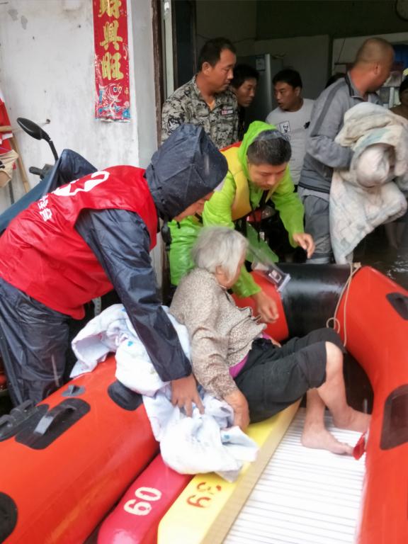 受今年第20号台风“卡努”倒槽和弱冷空气共同影响,舟山市普降暴雨,降雨量达到历史高值,部分沿海低洼地区出现严重的内涝灾害。舟山市红十字会组织浙江省(舟山市)红十字水(海)上应急救援队第一时间响应,10月16日上午8时,在队长黄永良教授亲自带领下,来自浙江海洋大学的骨干师资志愿和学生志愿者各5人以及来自红会机关3人和红十字志愿者5人,合计18名同志,出动各类车辆六辆、动力艇一艘、无动力艇四艘、橡皮伐两艘,赶赴普陀区东港街道新塘村等积水严重的乡镇救灾一线。冒着狂风暴雨,协助当地政府转移被困群众70余人。在紧张救援的同时,市红十字水(海)上应急救援队又接到来自展茅街道的求助。因当地地形复杂,水流较急,急需专业水上救援人员前去施救,队员们又紧急赶赴螺门社区,队员们发挥平日训练的操艇技术,经过连续6个多小时救援,水(海)上应急救援队共转移低洼地带群众80余名,得到广大群众和基层干部高度评价。