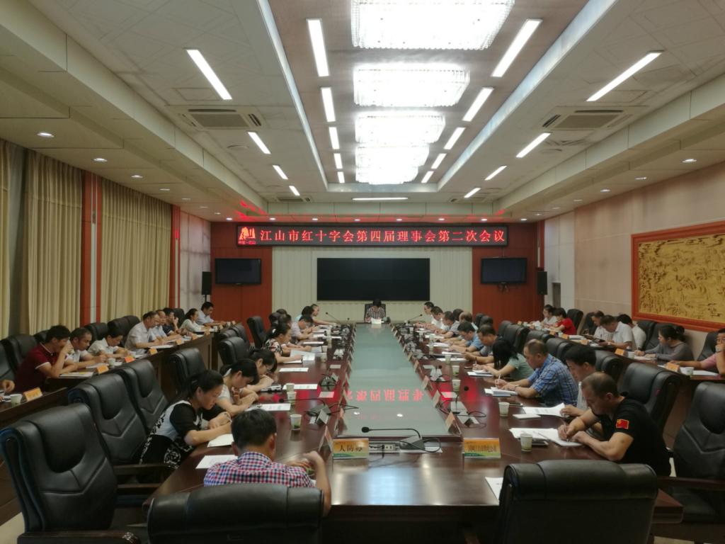 9月15日下午,江山市红十字会第四届理事会第二次会议在市政府办公大楼8楼会议室召开。市府办、组织部等23家理事成员单位和全市19个乡镇(街道)的红十字工作分管领导参加本次会议,共计50余人。
