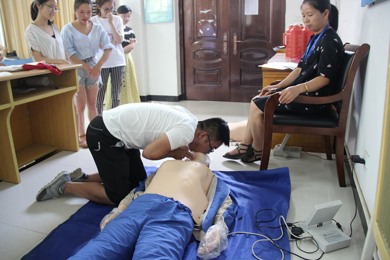 8月22日至23日 ,松阳县教育局联合县红十字会在县教师进修学校阶梯教室开展新教师应急救护培训。蔡苏红、夏文高两位红十字会培训师为2017年新招录的54名新教师授课。县红十字会为每位参训人员配发了急救包和《救护手册》。