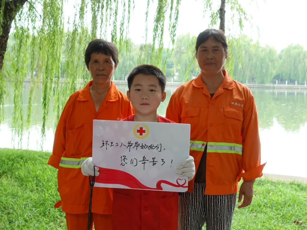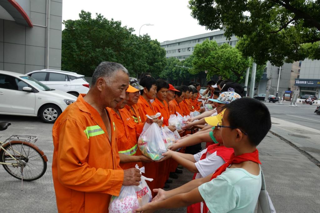 8月20日上午,越城区红十字会开展了“城市环卫工,请收清凉包”慰问活动,向220名一线环卫工人送去了夏令防暑用品。 活动邀请了小学生和一线环卫工人参加。首先由环成清洁公司的周蓉科长讲述了环卫工人的日常辛苦工作,让孩子们体会到了“宁脏我一人,洁净千万家”的奉献精神。然后,孩子们书写寄语卡片,走上街头,亲手向环卫工人献上清凉包。最后,小志愿者们同环卫工人一起清理垃圾,体验酷夏里环卫工人劳作的辛苦,大家感触颇深,纷纷表示:保护环境,要从我做起,不乱扔垃圾,尊重是对环卫工人最大的鼓励。 早前,越城区红十字会在微信公众平台上发起了“城市环卫工,请收清凉包”活动,花50元钱认捐一份清凉包送给环卫工人,清凉包里有绿豆、毛巾、香皂、风油精等防暑降温用品。活动受到了许多社会爱心人士的积极响应,共认捐清凉包220个并全部送出。