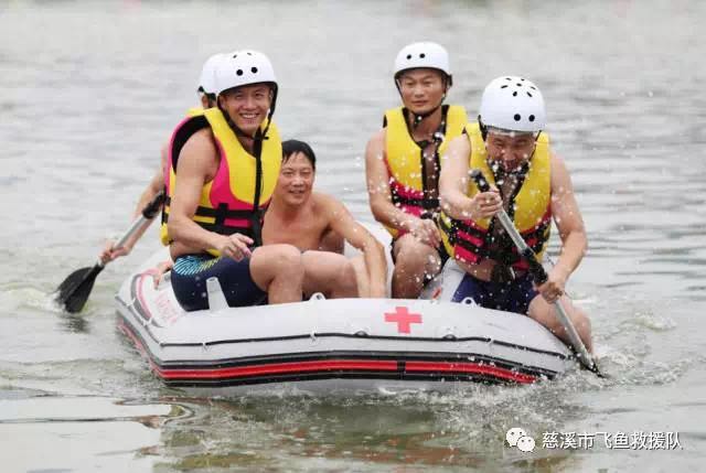 随后,市红十字会飞鱼水上救援队进行了水上救援演练。救援志愿者们训练有素,演示了绳索、浮条、橡皮挺、冲锋舟等各种救援方式,上演了一幕精彩的救援大片。